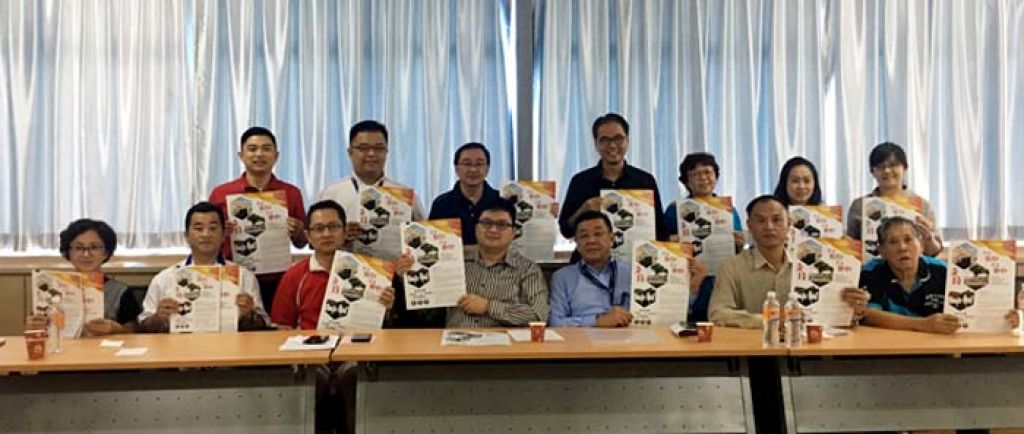 图:新闻发布会上合影,前排左起为四中校友会会长黄凤秋、三中校友会副会长许云健、一中校友会会长杨国宗、中中赞助人主任卢少奎、中中校董会主席拿督黄良杰、秘书长关伟华及财政沈桂馥。